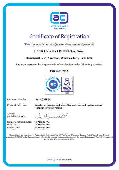 Genneg Associates – was created to meet the demands of a niche microfilm consumables market, by John Negus. It started at home in Sheepy Magna.