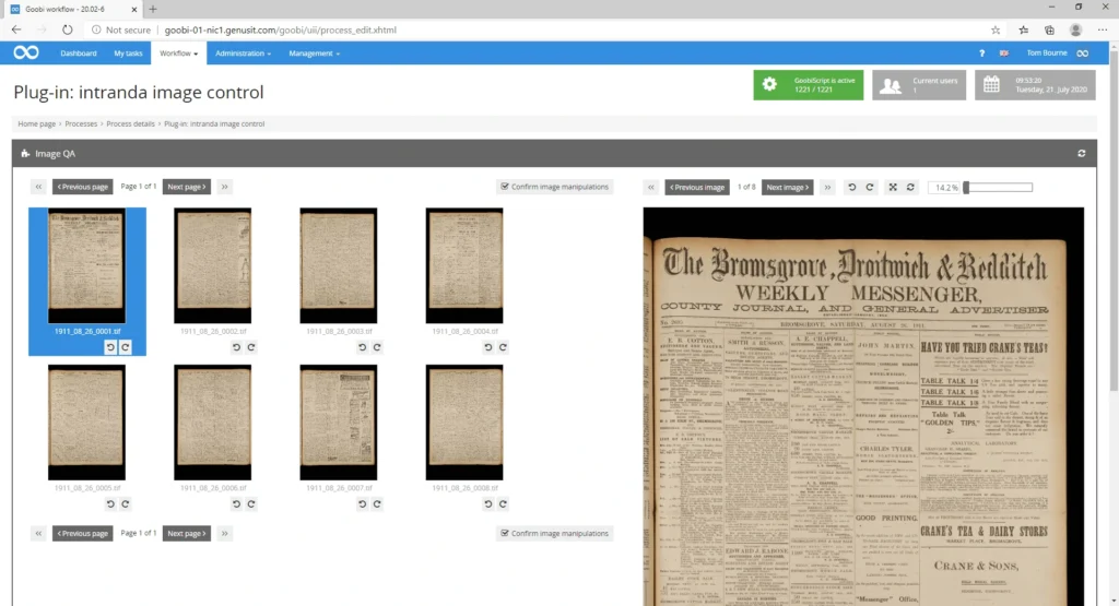 The Goobi workflow management system is installed in the Genus Studios to manage scanning production workflows.